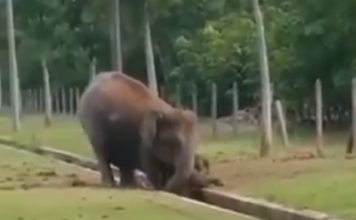 உயிருக்கு போராடும் குட்டியை காப்பாற்ற தாய் யானை செய்யும் செயல்! இணையத்தில் வைரலாகும் வீடியோ!!