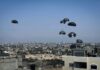 காசாவுக்கு பாராசூட்டில் நிவாரணம் அனுப்பிய ஐக்கிய அரபு அமீரகம்