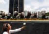 வெந்நிற உடைகளுடன் கைகளை ரோஜா பூக்களை ஏந்தி வெனிசுலா பெண்கள் நூதனப் போராட்டம்