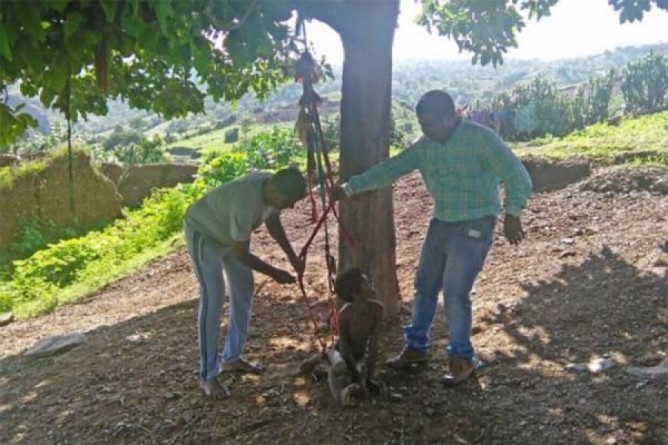 மனநலம் பாதிக்கப்பட்ட இரண்டு சிறுவர்களை அவர்களது குடும்பத்தினர் கடந்த 5 வருடங்களாக மரத்தில் விலங்குகளை போன்று கட்டி வைத்துள்ள சம்பவம் அதிர்ச்சியை ஏற்படுத்தியுள்ளது.