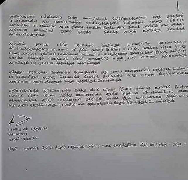 புலமைப்பரீட்சையில் சித்தியடைந்த பிள்ளைகளுடைய படங்களை ” பெனர்” மூலம் காட்சிபடுத்தவேண்டாம் என ’கேட்டுக்கொள்ளப்பட்டுள்ளது…!