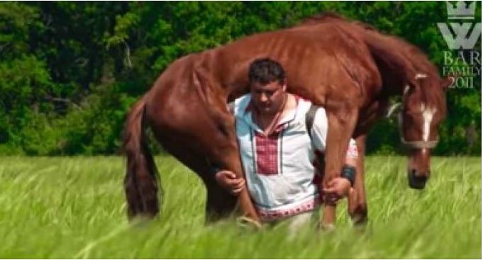 மனிதர்கள் குதிரைகளில் சவாரி செய்வது வழமை, ஆனால் குதிரை ஒன்று மனிதன் மீது சவாரி செய்த சம்பவம் உக்கிரைன் நாட்டில் இடம்பெற்று உலக சாதனையாக பதிவாகியுள்ளது.