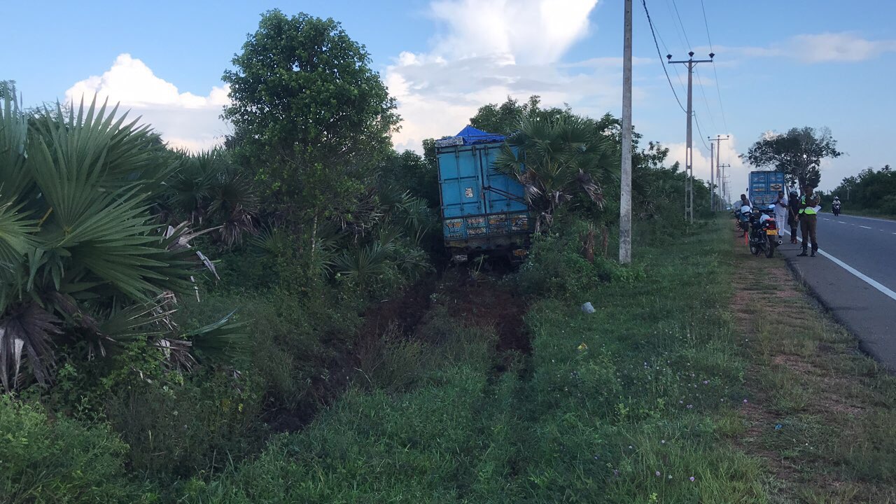 கொழும்பில் இருந்து யாழ்ப்பாணம் நோக்கி இரும்பகம் ஒன்றிற்கு பொருட்களை ஏற்றிச்சென்ற பார ஊர்தியின் சாரதிக்கு திடீர் மாரடைப்பு ஏற்பட்டமையினால் பாரஊர்தி வீதியை விட்டு கீழிறங்கி விபத்துக்குள்ளாகியுள்ளது.