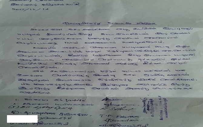 குறித்த கடிதத்தை தமிழரசுக்கட்சியின் சாவகச்சேரி தொகுதி அமைப்பாளர் அருந்தவபாலன் கையொப்பமிட்டு அனுப்பியுள்ளதுடன், அதில் போட்டியிடும் எழு வேட்பாளர்களும் கையெழுத்திட்டுள்ளனர்.