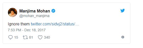 இதை நடிகை மஞ்சிமா மோகன் அப்படியே பின்பற்றுகிறார். அதை அவரே ட்விட்டரில் தெரிவித்துள்ளார்.