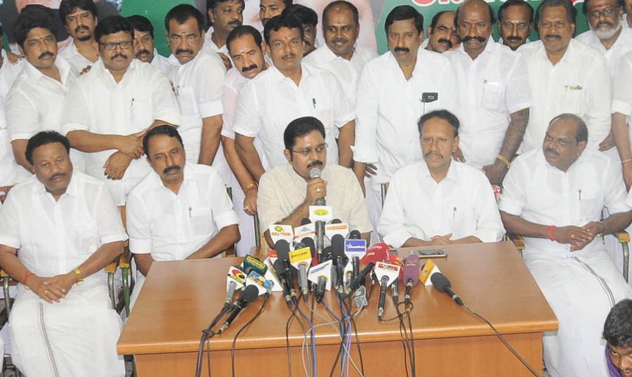 ஆர்.கே.நகர் இடைத்தேர்தல் அதிமுக தோல்வி குறித்த ஆலோசனை கூட்டத்தில் டி.டி.வி.தினகரன் ஆதரவு மாவட்ட செயலாளர்கள் 6 பேரை நீக்கிவிட்டு பின்னர் செய்தியாளர்களை சந்தித்தனர் ஓ.பி.எஸ்., இ.பி.எஸ்.