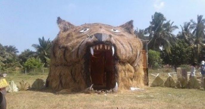முழுமையான இயற்கை பொருட்களை கொண்டு அமைக்கப்பட்ட கர்ச்சிக்கும் புலியின் முகத்தை மாணர்கள் வடிவமைத்துள்ளனர்.