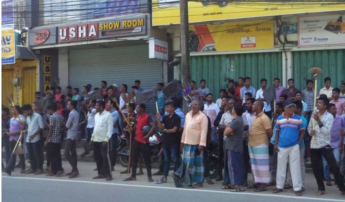 அத்துடன் பொது மக்கள் பிரதான வீதியின் இரு மருங்கிலும் நின்று கறுப்பு கொடிகளையும், விளக்குமாறு மற்றும் தும்புத்தடி என்பனவற்றை கையில் ஏந்தியவாறு தமது எதிர்ப்பினை தெரிவித்திருந்தனர்.