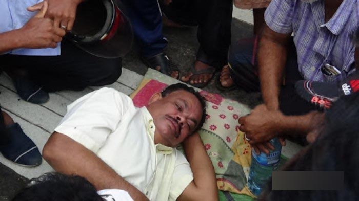 நாவலப்பிட்டிய பொலிஸ் பொறுப்பதிகாரிக்கு உடனடியாக இடமாற்றம் வழங்குமாறு கோரியே இந்த எதிர்ப்பு நடவடிக்கையில் அவர் ஈடுப்பட்டுள்ளார்.