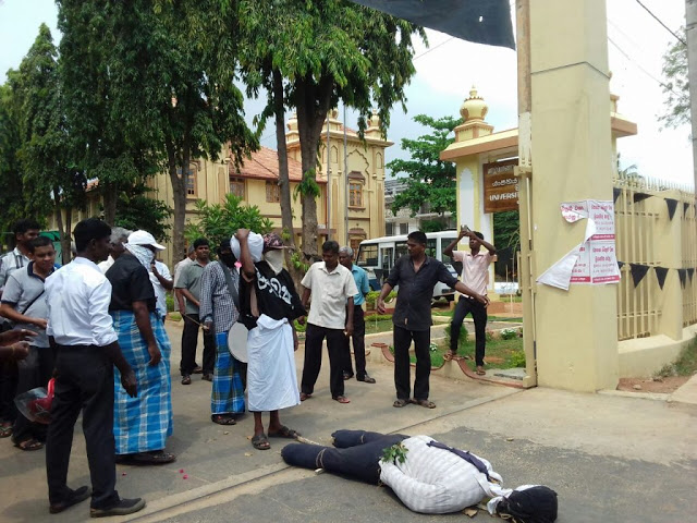 யாழ்ப்பாணப் பல்கலைக்கழக ஊழியர்கள் இன்று கொடும்பாவி எரித்து, இறுதிக் கிரியை செய்து போராட்டத்தில் ஈடுபட்டனர்.