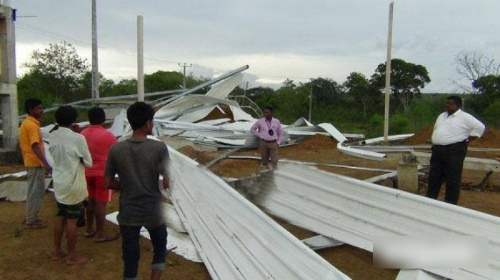 காற்றில் பறந்த கூரைத் தகடுகள் பல மீற்றர் தூரம் பறந்து சென்று வீதிக்கு அருகில் விழுந்து கிடந்துள்ளதனை அவதானிக்க முடிந்துள்ளது.