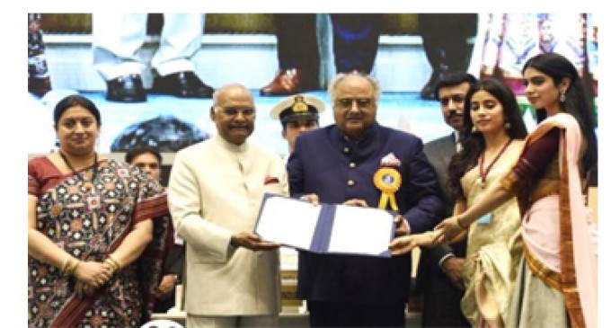 மறைந்த நடிகை ஸ்ரீதேவிக்கு தேசிய விருது இன்று நடந்த விழாவில் குடியரசு தலைவர் வழங்கினார். ஸ்ரீதேவி சார்பில் அவரது கணவர் மற்றும் மகள்கள் விருதை பெற்றுக்கொண்டனர்.