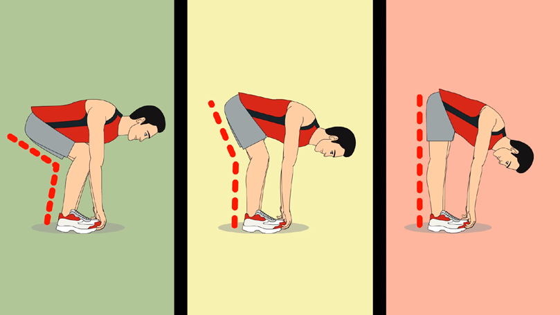 இப்போது உங்களது முட்டியை மடக்காமல் கைகளை நீட்டில் கால் விரலை தொட முயற்சியுங்கள்.