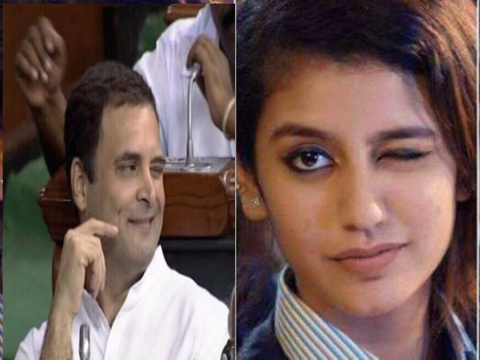 பாராளுமன்றத்தில் ராகுல் காந்தியின் கண் சிமிட்டல், அப்படியே பிரியா வாரியரின் சிமிட்டலைப்போல அமைந்தது.