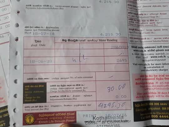 பொதுமக்களின் பணத்தை அரசுக்கு வேண்டுமென்றே பெற்றுக் கொடுக்கும் சதியினை புதிதாக CEB மின்மானி வாசிப்போராக கடமையாற்றும் நபர்கள் மேற்கொள்கிறார்களோ என்று எண்ணத்தோன்றுகிறது.