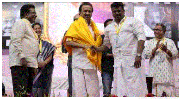 அப்போது இயக்குநரும், நடிகருமான பார்த்திபன் பேசிக்கொண்டிருக்கும்போது, “நான் ஸ்டாலினுக்கு இங்கு மரியாதை செய்ய விரும்புகிறேன்.