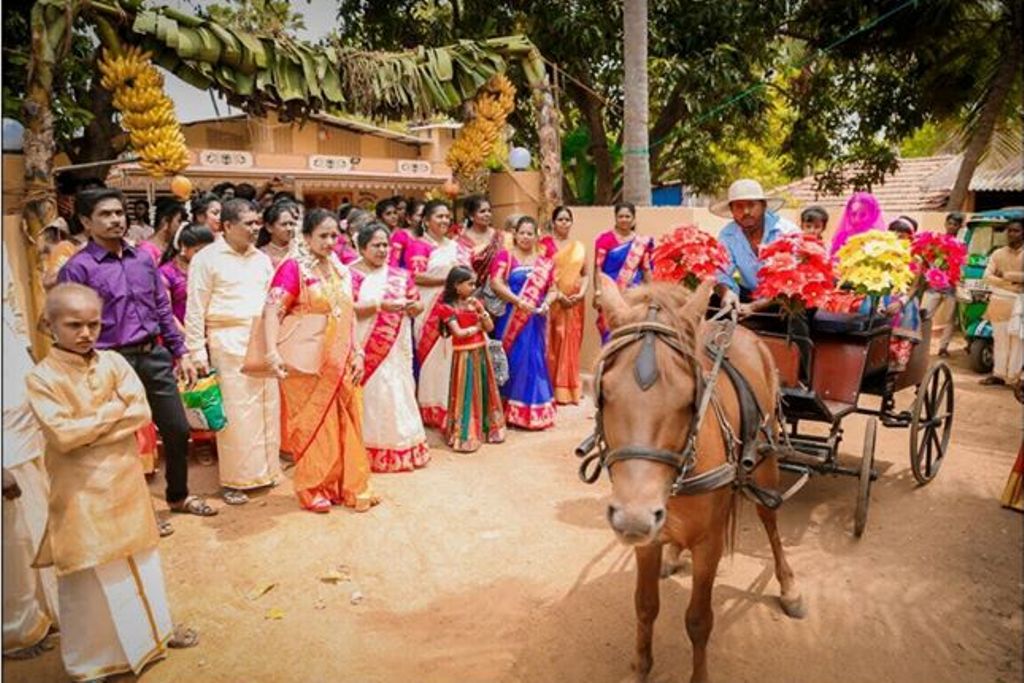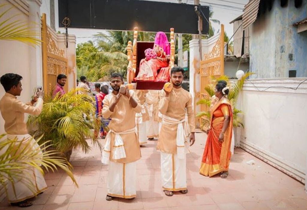 ஆம், அண்மையில் யாழ் சண்டிலிப்பாய் பிரதேசத்தில் இடம்பெற்ற பூப்புனித நீராட்டு விழாவில் குதிரை வண்டியிலும், பல்லக்கிலும் பூப்புனித நீராட்டு விழா நடந்த பெண் பிள்ளையை சுமந்து சென்று, மணவறையில் இருந்தி, தமிழர் மரபுப்படி ஆராத்தி எடுத்து அசத்தியுள்ளனர். அத்துடன் நின்று விடாமல், நிகழ்வில் கலந்து சிறப்பித்த அனைவருக்கும் செவ்விளநீர் பானமாக வழங்கப்பட்டது. இதனால், நிகழ்வில் கலந்து கொண்ட அனைவரும் இன்ப அதிர்ச்சியில் மூழ்கியுள்ளனர்.