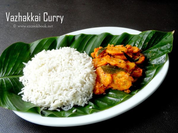 வாழைக்காயை இரண்டாக நறுக்கி ஆவியில் ஐந்து நிமிடம் வேக வைத்து ஆற வைக்கவும். பிறகு தோலுரித்து வட்டமாக நறுக்கிக் கொள்ளுங்கள். வெங்காயம், தக்காளியைப் பொடியாக நறுக்கிக் கொள்ளுங்கள்.