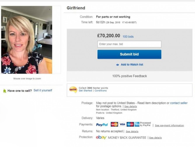 அதாவது கடந்த செப்டம்பர் மாதம் 29-ஆம் திகதி தன் காதலியின் புகைப்படத்தை பிரபல இணையதளமான E-bay-யின் வணிக நிறுவனத்தின் தளத்தில் Girlfriend for sale என்று விளம்பரம் கொடுத்துள்ளார்.