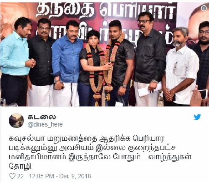 தமிழகத்தில் ஆணவப்படுகொலை செய்யப்பட்ட சங்கரின் மனைவி கெளசல்யா இரண்டாம் திருமணம் செய்து கொண்டது குறித்து சமூகவலைத்தளங்களில் பல்வேறு விதமான கருத்துகள் வருகின்றன.