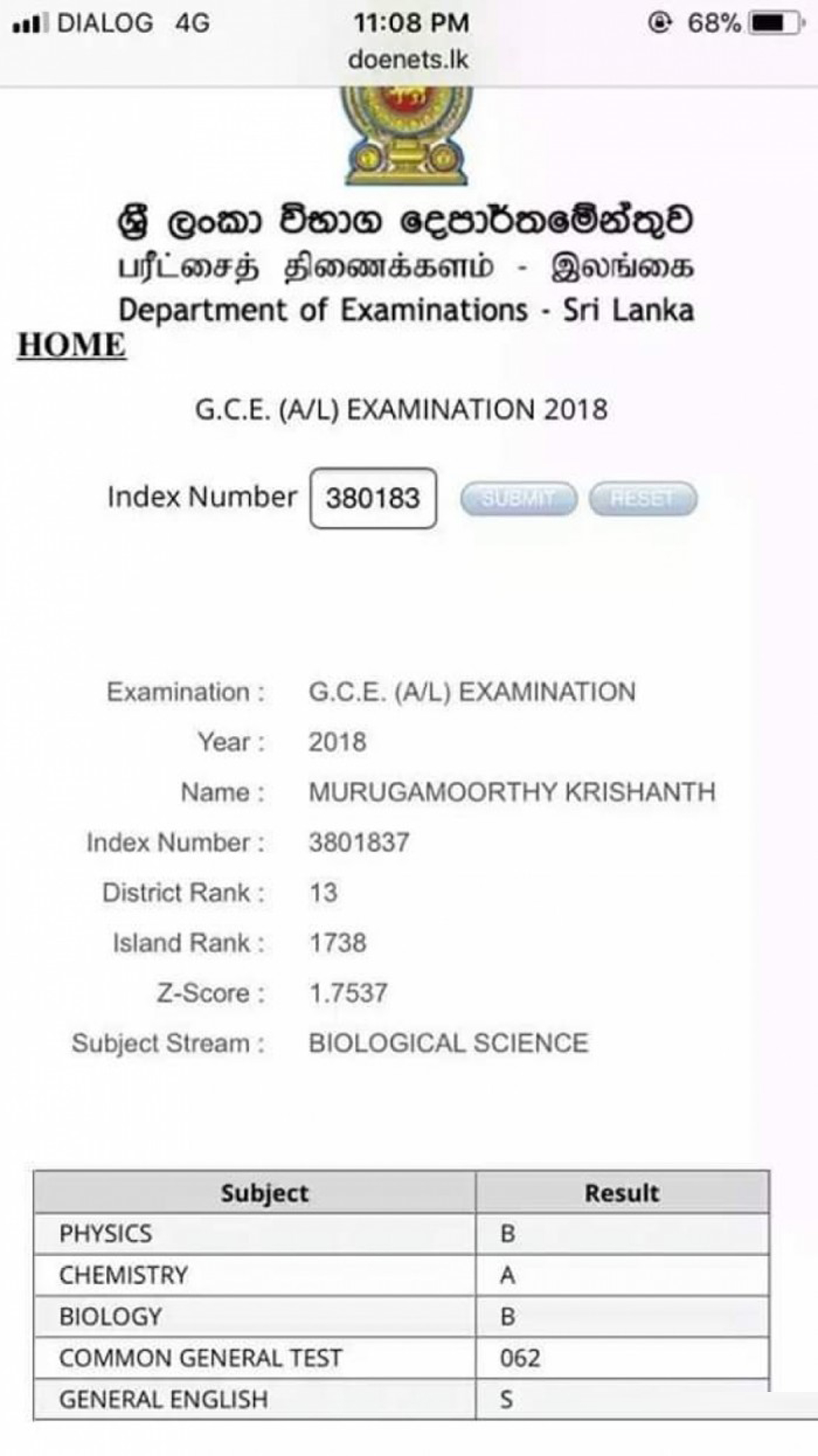 இந்த மாணவன் துறைநீலாவணை மகாவித்தியாலயத்தில் உயர் கல்வியை கற்றுள்ளார். இது தொடர்பில் முருகமூர்த்தி கிருஷாந் கருத்து தெரிவிக்கையில்,