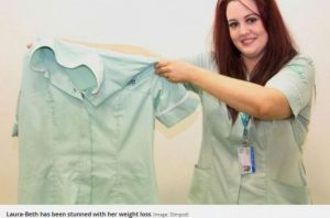 செவிலியரான இவர் கடந்த ஐந்து ஆண்டுகளாக உடல் எடை அதிகரிப்பால் அவதிப்பட்டு வந்துள்ளார். முதலில் இவரின் size 18-ஆக இருந்தது. ஆனால் தற்போது அதை size 10-ஆக மாற்றி காண்பித்துள்ளார்.