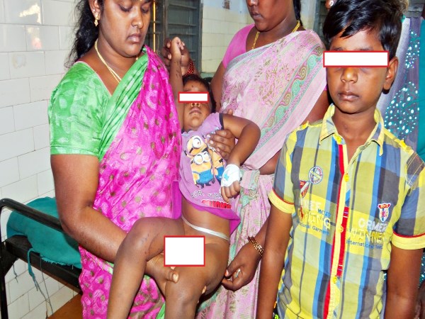 இந்நிலையில், சிறுவன் குமரனும், குழந்தை கார்த்திக் சரவணனும் பரந்தாமன் வீட்டினருகே விளையாடியதாக பரந்தாமன் தனது வீட்டின் மாடியிலிருந்து குழந்தைகள் மீது பாட்டிலில் இருந்து அமிலத்தை வீசியுள்ளார்.