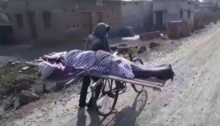 ஆனால் மனம் தளராத சரோஜ், தனது அம்மாவின் உடலை சைக்கிளின் பின்னால் வைத்து, பேலன்ஸ் செய்வதற்காக இரண்டு கம்புகளை, சைக்கிளின் இரு பக்கமும் பொருத்தி, அதன்மேல் மரக்கட்டையை வைத்து அம்மாவின் உடலை கிடத்தியுள்ளார். பின், தன் தலையில் ஒரு துண்டை போட்டுக் கொண்டு நான்கைந்து கி.மீ நடந்தே உடலை காட்டுக்குக் கொண்டு சென்றுள்ளார். மேலும் நடந்து செல்லும் வழியில், இது யார் என்று கேட்டவர்களுக்கு, குரல் உடைந்து, ’என் அம்மா’ என்று பரிதாபமாகச் சொல்லிவிட்டு சென்றுள்ளார் சரோஜ்.
