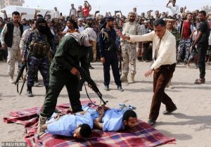 இந்த நிலையில் ஏடன் நகரத்தில் நூற்றுக்கும் மேற்பட்ட மக்கள் முன்னிலையில் இருவருக்கும் துப்பாக்கியால் சுட்டு மரண தண்டனை நிறைவேற்றப்பட்டது.