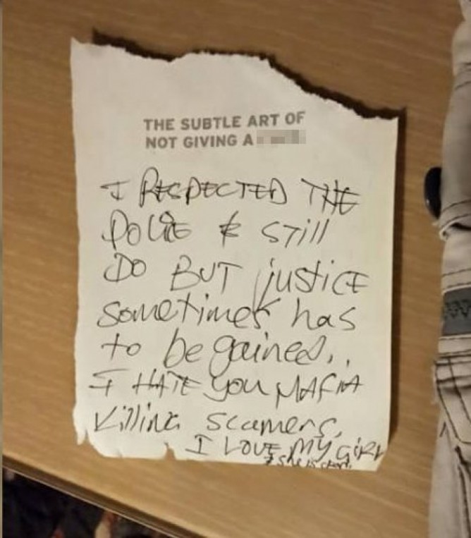நான் மாஃபியா கும்பலை வெறுக்கிறேன், எனது காதலியை விரும்புகிறேன் என கடிதம் ஒன்றில் அவர் குறிப்பிட்டுள்ளது பொலிசாரிடம் சிக்கியுள்ளது.