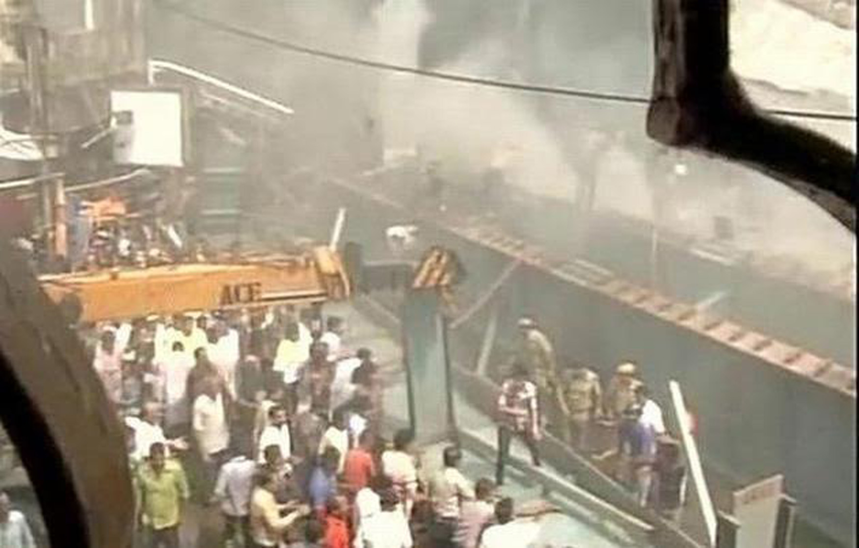 மகாராஷ்டிர மாநிலம், மும்பை சத்ரபதி சிவாஜி ரயில் நிலையம் அருகே உள்ள நடை மேம்பாலம் இடிந்து விழுந்து விபத்துக்குள்ளாகியுள்ளது.