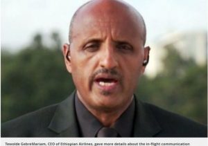 இதையடுத்து இந்த விபத்து நடப்பதற்கு முன்னர் அந்த விமானத்தின் விமானி Yared Getachew(29) கட்டுப்பாட்டு அறைக்கு தொடர்பு கொண்டு என்ன பேசினார் என்பதை விமான நிறுவனத்தின் CEO-வான Tewolde GebreMariam தெரிவித்துள்ளார்.