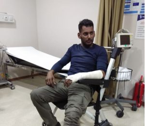 இந்நிலையில் சண்டை காட்சிக்கான படப்பிடிப்பில், விஷாலுக்கு கால் மற்றும் கையில் அடிபட்டு உள்ளது. இது தொடர்பாக புகைப்படம் ஒன்று வெளியாகியுள்ளது. அதில் வீலிங் சேரில் உட்காந்துள்ளார் விஷால். அவருக்கு கை மற்றும் கால்களில் கட்டு போடப்பட்டுள்ளது. இதனால் படப்பிடிப்பு நிறுத்தப்பட்டுள்ளது.