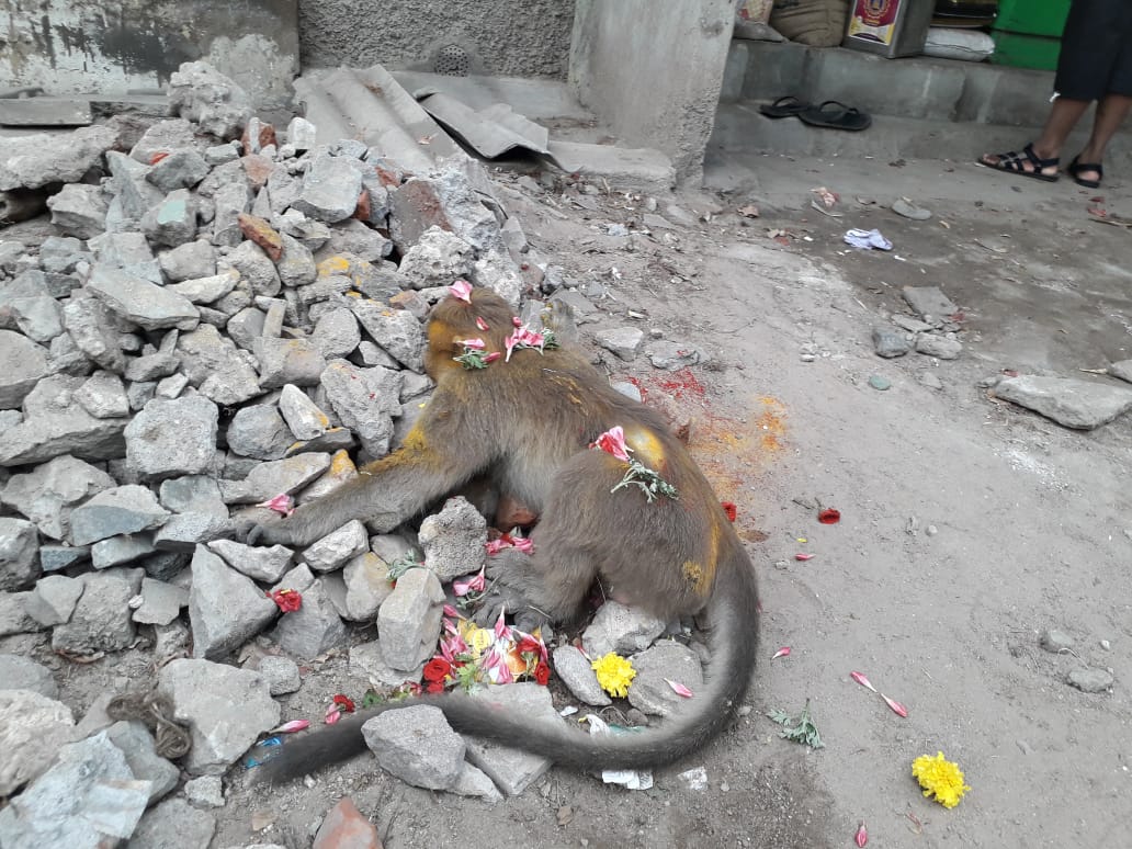இதன்காரணமாக அங்கியுள்ள மக்கள் அதிர்ச்சியடைந்துள்ளனர். மேலும், இதனை கண்ட அருகில் உள்ள கடைக்காரர்கள், மற்றும் பொதுமக்கள் இறந்த குரங்குக்கு மஞ்சள் தடவியும் , பூக்களை தூவியும் அஞ்சலி செலுத்தினர், அதை உரிய மரியாதையுடன் அடக்கம் செய்யவும் ஏற்பாடுகளை செய்தனர்