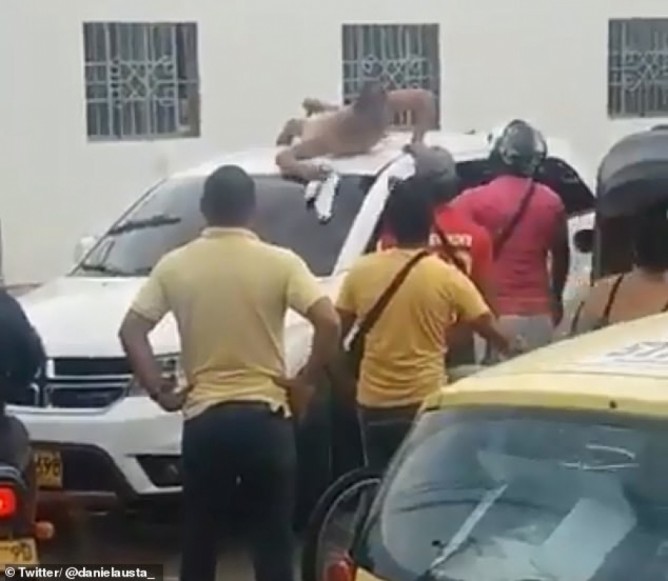 அப்படியே மனைவி தனது கணவனை கார் மீது நிர்வாணமாக படுக்க வைத்து காரை ஓட்டி வர, பார்ப்பவர்கள் எல்லாம் அவரை பார்த்து கேலி செய்து சிரித்ததோடு அவரை வீடியோவும் எடுக்க, தன் கையிலிருந்த டவலில் முகத்தை புதைத்துக் கொண்டார் அவர்.