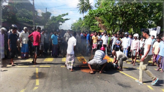 இதனையடுத்து கெக்கிராவை – திப்பட்டுவாவ பகுதியில் ஏ-9 வீதியை வழிமறித்து பிரதேசவாசிகள் ஆா்ப்பாட்டத்தில் ஈடுபட்டு வருகின்றனர்.