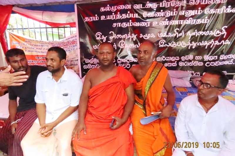 கல்முனை சுபத்ரா ராமய விகாராதிபதி ரன்முத்துக்கல சங்கரத்ன தேரர் தலைமையில், உண்ணாவிரதத்தை மேற்கொண்டு வந்தவர்களுடன், இன்று காலை கல்முனை காவல்துறை கண்காணிப்பாளர் ஹேரத் பேச்சுக்களை நடத்தினார்.