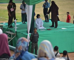 இந்தோனேஷியாவில் திருமணத்துக்குமுன் பாலுறவு வைத்துக் கொண்ட ஜோடிக்கு தண்டனையாக பொது மக்கள் முன்னிலையில் 100 பிரம்படிகள் கொடுக்கப்பட்டன.