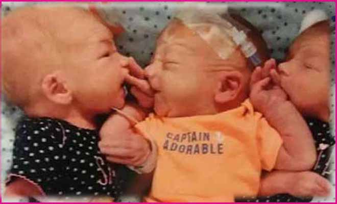 அமெரிக்காவைச் சேர்ந்த பெண் ஒருவர் கர்ப்பமானதே தெரியாமல் ஒரே பிரசவத்தில் 3 குழந்தைகளை பிரசுவித்துள்ளார்.