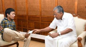 இதில், மனதை நெகிழ வைத்தது என்னவென்றால், மாற்றுத்திறனாளி சிறுவனுக்கு கைகள் இல்லை. எனவே கால்கள் மூலமாக நிதியுதவிக்கான காசோலையை அளிக்கிறார். அந்த சிறுவன் கால்களினால் கொடுக்கிறான் என்று எண்ணாமல், சிறுவனின் உதவும் மனப்பான்மைக்கு முழு மரியாதை அளித்து அதனை இன்முகத்துடன் பெற்றுக்கொள்கிறார் முதல்வர். கால்களினால் அந்த சிறுவன் செல்பி எடுக்க, அதற்கும் புன்னகையுடன் போஸ் கொடுக்கிறார் பினராயி விஜயன்.