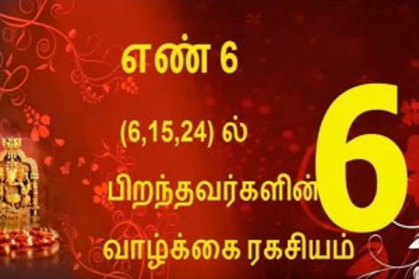 மனிதர்கள் அறுசுவை உணவு என ஆறு வகையான சுவைகளை உண்ணுகிறார்கள். சுவையையும் உணர்கிறார்கள். ஆறு வகையான சாஸ்திரங்களும் உள்ளன. முருகப்பெருமானின் ஆறுமுகங்களும் ஆறு வகையான தத்துவங்களை சூட்சும முறையில் உணர்த்துகின்றன. அதுபோல 6 என்ற எண்ணும் மனித வாழ்வில் சிறந்த முறையில் செல்வாக்கினை பெற்றதாக திகழ்கிறது. 6,15,24 ஆகிய எண்களில் பிறந்தவர்கள் 6ம் எண்ணின் ஆதிக்கத்திற்குரியவர்கள். 6ம் எண்ணுக்குரிய கிரகம் சுக்கிரனாவார். சுக்கிரனை வெள்ளி என்றும் அழைப்பார்கள். வாரத்தில் 6ம் நாளாக வெள்ளிக்கிழமை வரும். வெள்ளிக்கிழமை வாரத்தின் சிறந்த நாளாக கருதப்படுகிறது. 6ம் எண்ணுக்குரிய ஆங்கில எழுத்துக்கள் ஹி.க்ஷி.கீ ஆகியவைகள் ஆகும்.
