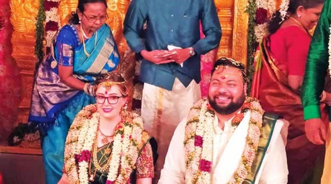 அமெரிக்காவில் எஞ்சினீராக பணிபுரிந்து வரும் தமிழக இளைஞர், அங்குள்ள பெண்ணை காதலித்து திருமணம் செய்துள்ளார்.