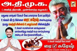 இந்நிலையில் மதுரையில் உள்ளாட்சி தேர்தலை முன்னிட்டு அஜித் திராவிட முன்னேற்ற கழகம் என்ற பெயரில் கட்சி தொடங்க உள்ளதாகவும், மதுரையில் போஸ்டர்கள் ஒட்டப்பட்டு பரபரப்பை ஏற்படுத்தியுள்ளது,