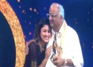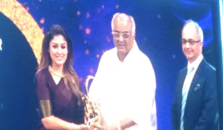 நயன்தாராவுக்கு நேற்று நடந்த விருது விழா ஒன்றில் Sridevi Award for Inspiring Women of Indian Cinema என்ற விருது வழங்கப்பட்டது. அதை நடிகை ஸ்ரீதேவியின் கணவர் போனி கபூர் தான் வழங்கினார்.