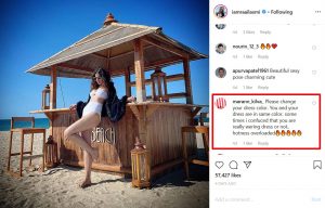 இதற்கு, ‘நெட்டிசன்’கள் பலர்,ட்ரெஸ் கலரை மாத்துங்க.. நீங்களும் வெள்ளை, உங்கள் ட்ரெஸ்ஸும் வெள்ளை, சில நேரங்களில் நிஜமாவே ட்ரெஸ் போட்டு இருக்கீங்களான்னே கன்ஃப்யூஸ் ஆகுது..!” என கிண்டலாக கருத்துகளை பதிவிட்டு வருகிறார்கள்.