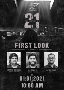 இந்த திரைப்படம் சிவி குமார் அவர்களின் திருக்குமரன் எண்டர்டெயின்மெண்ட் நிறுவனத்தின் 21 வது படம் என்பது குறிப்பிடத்தக்கது. அஸ்வின், கலையரசன், கவுரவ் நாராயணன் உள்ளிட்ட பலர் நடித்துள்ள இந்த திரைப்படத்தின் டைட்டில் மற்றும் பர்ஸ்ட் லுக் போஸ்டர் என்ன என்பதை புத்தாண்டு வரை பொறுத்திருந்து பார்ப்போம்