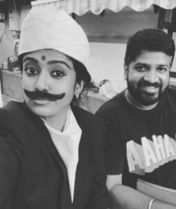 அதாவது அவர் பாரதி போல் வேடம் அணிந்துள்ளார், அவருக்கு அருகில் பாரதி கண்ணம்மா சீரியல் இயக்குனர் பிரவீன் அமர்ந்துள்ளார்.