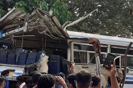 வனவாசல பகுதியில் நேற்று புகையிரதத்தின் வருகையை குறிக்கும் வகையில் சமிஞ்சை விளக்கு ஒளிர்ந்த போதும் , அதனை பொருட்படுத்தாத சாரதி ஒருவர் பஸ்ஸை செலுத்தியதில் அது புகையிரதத்துடன் மோதி விபத்துக்குள்ளானது.