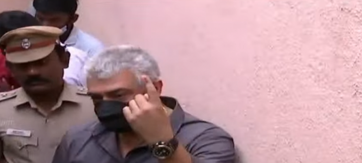 ஓட்டு போடும் அன்று எப்போதும் காலையிலேயே முதல் ஆளாக வரும் அஜித் இன்றும் தனது மனைவியுடன் திருவான்மியூரில் ஓட்டு போட வாக்குச் சாவடிக்கு வந்துள்ளார்.