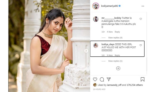 தற்போதும் சோசியல் மீடியாவில் ஆக்டிவாக வலம் வரும் லொஸ்லியா, அவ்வப்போது புகைப்படங்களை வெளியிட்டு வருகின்றார்.